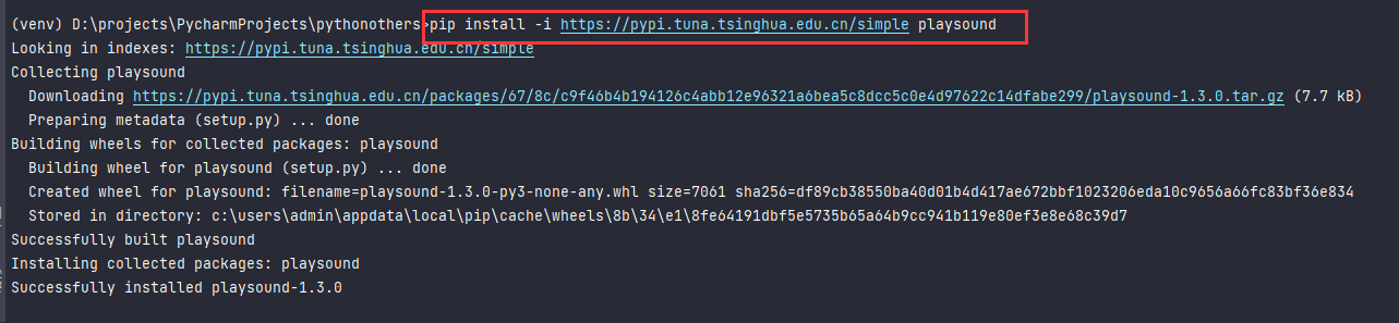 pip install -i https://pypi.tuna.tsinghua.edu.cn/simple playsound