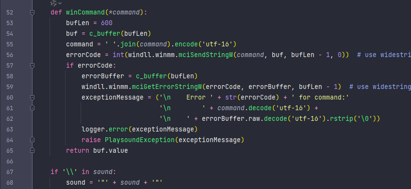 playsound虽然很易用,但是有时候也会出现意外的错误,最常见的例如: